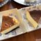 Kamu bisa mengambil sendiri cheesecake yang sudah disajikan per slice di dalam kulkas. Ukuran per potongnya terbilang besar. Menyoal teksturnya, cheesecake di sini termasuk yang padat.