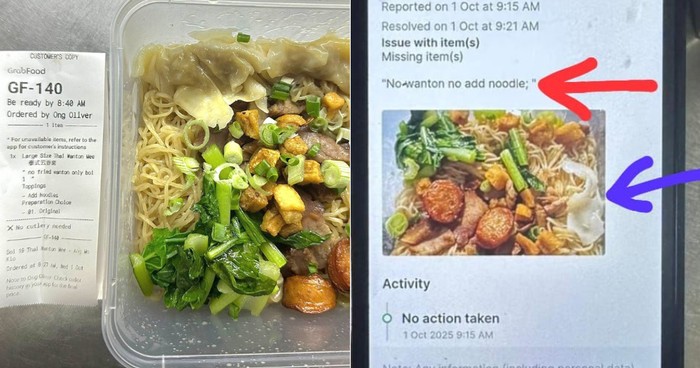 Namun pukul 10.01 pagi, restoran menerima notifikasi di aplikasi GrabFood mereka bahwa pelanggan mengklaim pesanannya tidak ada wanton dan mie tambahan, bahkan melampirkan foto kulit wanton kosong sebagai bukti.