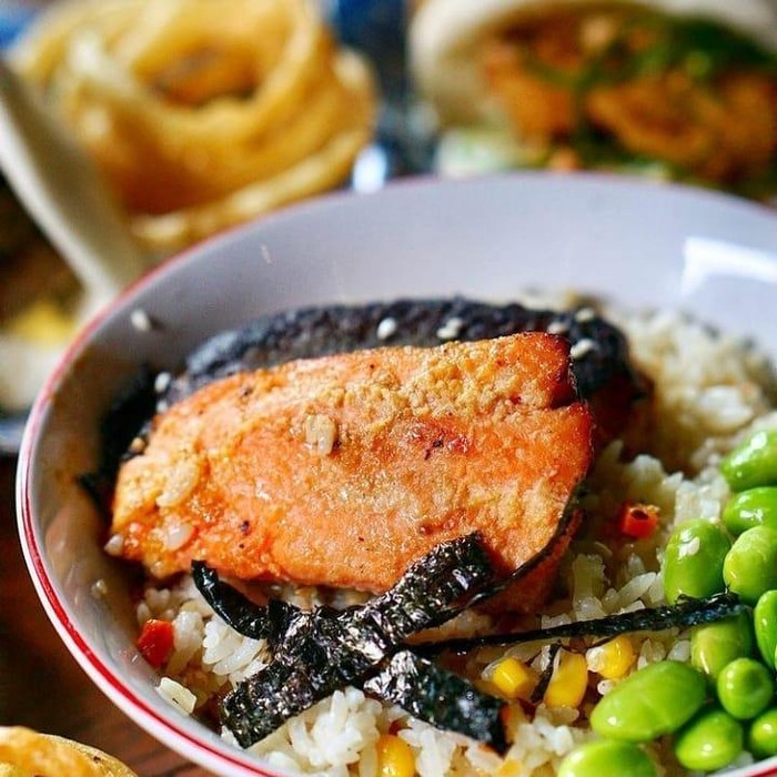 Salah satu yang menarik ada menu Salmon Aburi Rice Bowl seharga Rp 74.000. Salmonnya berukuran besar dengan tekstur yang garing di luar, tetapi masih terasa lembut di dalam.