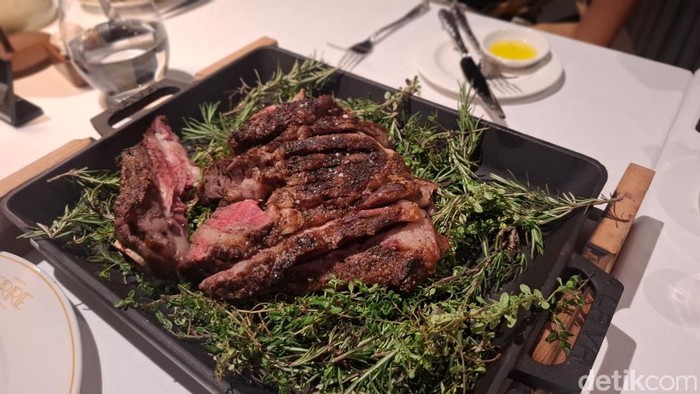 Sebagai bintang dari set menu, chef Alejandro menghadirkan Wagyu MB5 Prime dari Australia yang sudah melalui proses dry aged selama 58 hari. Sesuai dengan konsep Erre, yang dalam bahasa Spanyol berarti pembakaran, daging dibakar dengan kayu tertentu sehingga menghasilkan aroma smoky yang khas.