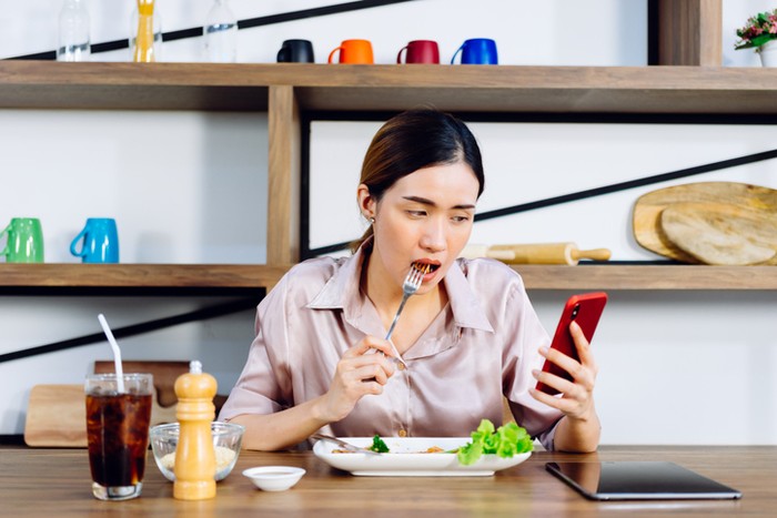 Kebiasaan makan sambil menonton televisi kerap dianggap sebagai cara paling nyaman untuk bersantai, terutama saat libur Natal dan Tahun Baru. Namun ternyata makan sambil main handphone dinilai lebih baik.