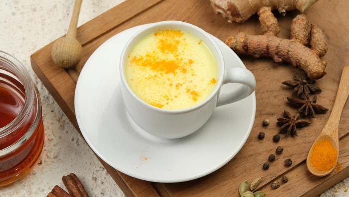 Minuman hangat dan menenangkan ini mirip chai latte. Campuran kunyit yang kaya akan kurkumin menjadi penyumbang utama manfaat sehatnya. Sebab kurkumin ampuh dalam melawan peradangan.