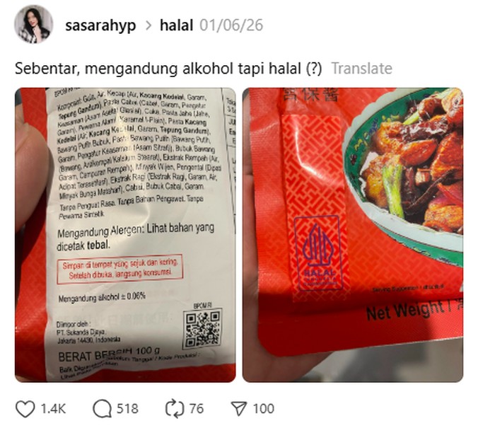 Dikonfirmasi oleh infoFood, (19/1/2026), Sarah mengungkapkan produk tersebut adalah bumbu masak Ayam Kung Pao. Awalnya ia juga kebingungan apakah bumbu tersebut tetap boleh dikonsumsi atau lebih baik dihindari.
